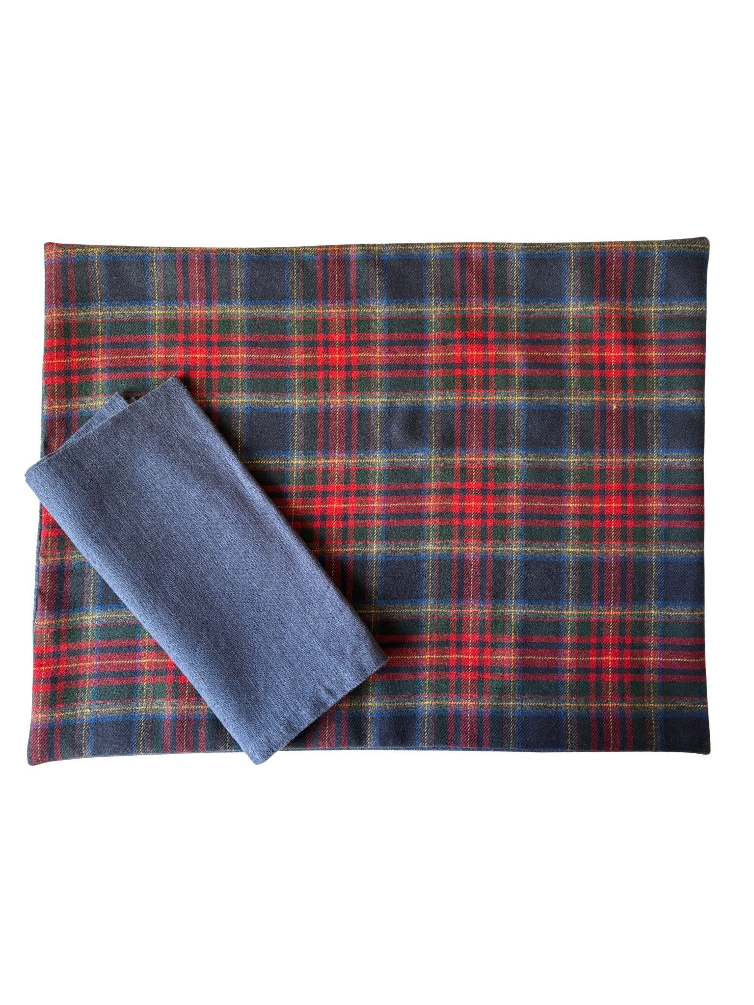 4 reversible placemats, one side 100% flannel tartan, the other 100% linen, 45x35cm